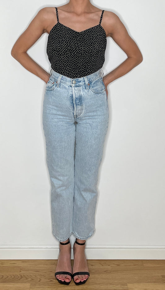 Modernes gemustertes und ärmelloses Top aus Seide mit V-Ausschnitt und Spaghettiträgern